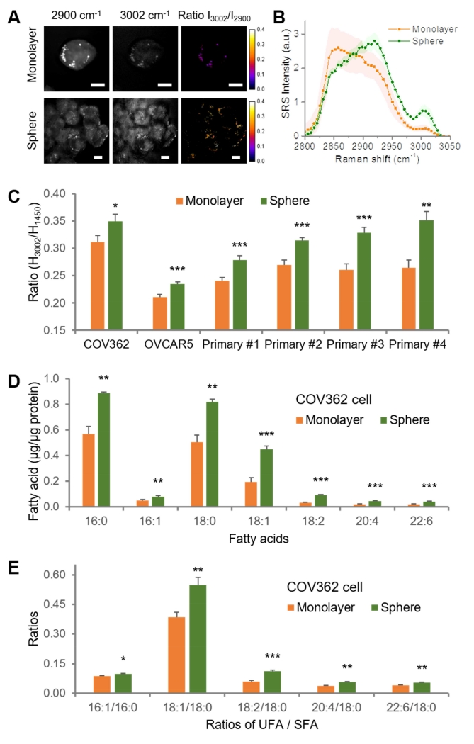 Keywords: NF-κB; Raman spectroscopic imaging; SCD1; cancer stem cells; lipid desaturation; ovarian cancer.