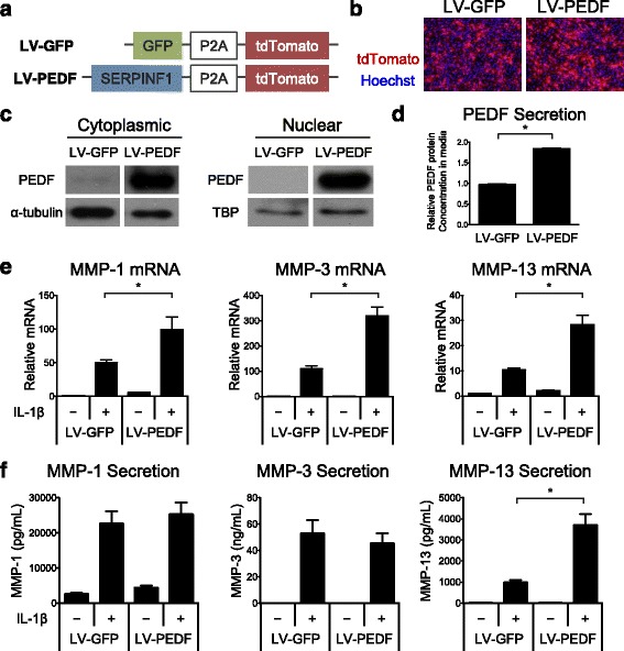 Methods: PEDF was ectopically expressed in primary human articular chondrocytes, and catabolic gene expression and protein secretion in response to the pro-inflammatory cytokine interleukin 1 beta (IL-1β) were evaluated. Metatarsal bones from PEDF-deficient and wild type mice were cultured in the presence or absence of IL-1β. Cartilage matrix integrity and matrix metalloproteinases MMP-1, MMP-3, and MMP-13 were evaluated. PEDF-deficient and wild type mice were evaluated in the monosodium iodoacetate (MIA) inflammatory joint destruction animal model to determine the role of PEDF in inflammatory arthritis in vivo. Student's t-tests and Mann-Whitney tests were employed where appropriate, for parametric and non-parametric data, respectively.