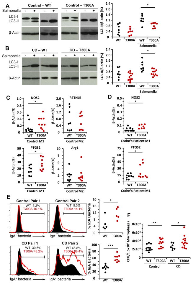 Intact ATG16L1 plays an essential role in Paneth cell function and intestinal homeostasis. However, the functional consequences of ATG16L1 deficiency in myeloid cells, particularly macrophages, are not fully characterized. We generated mice with Atg16l1 deficiency in myeloid and dendritic cells and showed that mice with myeloid Atg16l1 deficiency had exacerbated colitis in two acute and one chronic model of colitis with increased proinflammatory to anti-inflammatory macrophage ratios, production of proinflammatory cytokines, and numbers of IgA-coated intestinal microbes. Mechanistic analyses using primary murine macrophages showed that Atg16l1 deficiency led to increased reactive oxygen species production, impaired mitophagy, reduced microbial killing, impaired processing of MHC class II Ags, and altered intracellular trafficking to the lysosomal compartments. Increased production of reactive oxygen species and reduced microbial killing may be general features of the myeloid compartment, as they were also observed in Atg16l1-deficient primary murine neutrophils. A missense polymorphism (Thr300Ala) in the essential autophagy gene ATG16L1 is associated with Crohn disease (CD). Previous studies showed that this polymorphism leads to enhanced cleavage of ATG16L1 T300A protein and thus reduced autophagy. Similar findings were shown in primary human macrophages from controls and a population of CD patients carrying the Atg16l1 T300A risk variant and who were controlled for NOD2 CD-associated variants. This study revealed that ATG16L1 deficiency led to alterations in macrophage function that contribute to the severity of CD.
