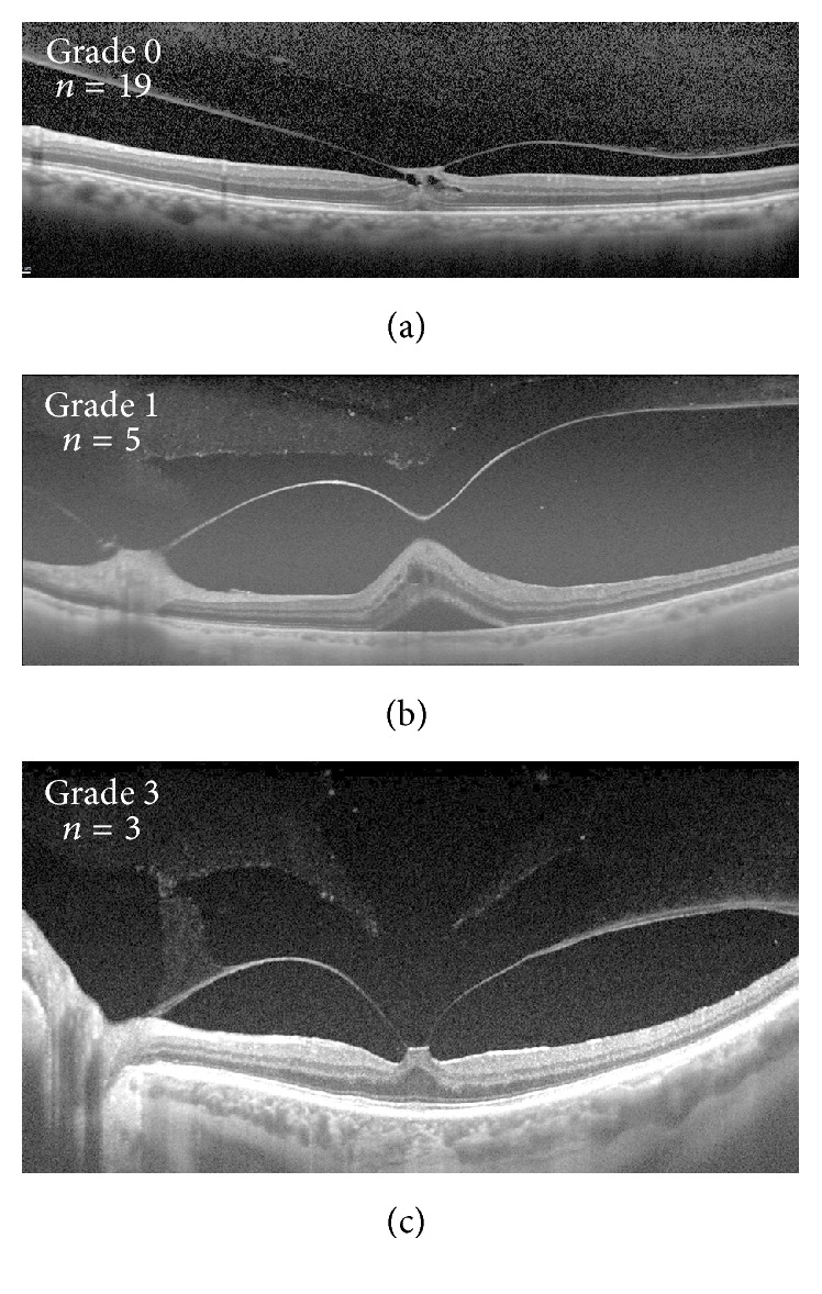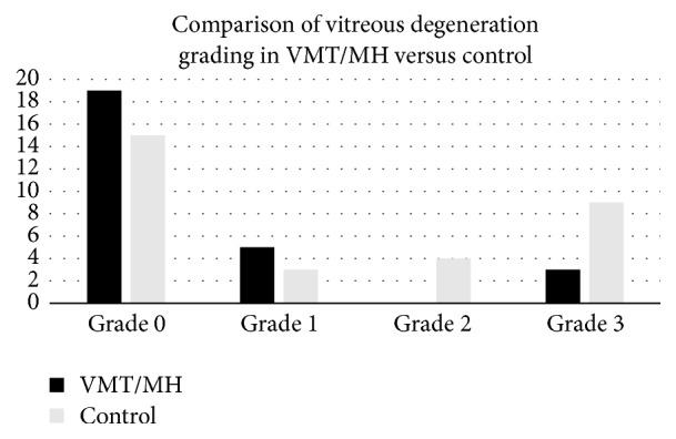 Purpose. To compare the stages of vitreous degeneration in patients with vitreomacular traction (VMT) and macular holes (MH). Methods. A retrospective study was performed analyzing stages of vitreous degeneration of eyes with VMT or MH using swept-source optical coherence tomography (SS-OCT) and spectral-domain optical coherence tomography (SD-OCT). An analogous review was performed on a control group of eyes with contralateral posterior vitreous detachments. Thirty-four eyes with VMT/MH and 39 control eyes were reviewed. Results. Twenty-seven VMT/MH eyes and 31 control eyes were included. Eyes with VMT/MH demonstrated significantly earlier stages of vitreous degeneration when compared to the control group (p = 0.048) despite significantly greater age (p = 0.032). Conclusions. Vitreoretinal interface disease is more often associated with a formed vitreous and an intact premacular bursa. This is contrary to previous assumptions implicating degeneration of vitreous as a precipitating factor of interface disease when in conjunction with abnormal vitreomacular separation.