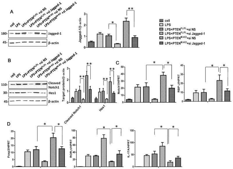 The phosphatase and tensin homolog (PTEN) deleted on chromosome 10 plays an important role in regulating T cell activation during inflammatory response. Activation of β-catenin is crucial for maintaining immune homeostasis. This study investigates the functional roles and molecular mechanisms by which PTEN-β-catenin signaling promotes regulatory T cell (Treg) induction in a mouse model of liver ischemia/reperfusion injury (IRI). We found that mice with myeloid-specific phosphatase and tensin homolog knockout (PTENM-KO ) exhibited reduced liver damage as evidenced by decreased levels of serum alanine aminotransferase, intrahepatic macrophage trafficking, and proinflammatory mediators compared with the PTEN-proficient (floxed phosphatase and tensin homolog [PTENFL/FL ]) controls. Disruption of myeloid PTEN-activated b-catenin promoted peroxisome proliferator-activated receptor gamma (PPARγ)-mediated Jagged-1/Notch signaling and induced forkhead box P3 (FOXP3)1 Tregs while inhibiting T helper 17 cells. However, blocking of Notch signaling by inhibiting γ-secretase reversed myeloid PTEN deficiency-mediated protection in ischemia/reperfusion-triggered liver inflammation with reduced FOXP3+ and increased retinoid A receptor-related orphan receptor gamma t-mediated interleukin 17A expression in ischemic livers. Moreover, knockdown of β-catenin or PPARγ in PTEN-deficient macrophages inhibited Jagged-1/Notch activation and reduced FOXP3+ Treg induction, leading to increased proinflammatory mediators in macrophage/T cell cocultures. In conclusion, our findings demonstrate that PTEN-β-catenin signaling is a novel regulator involved in modulating Treg development and provides a potential therapeutic target in liver IRI. Liver Transplantation 23 813-825 2017 AASLD.