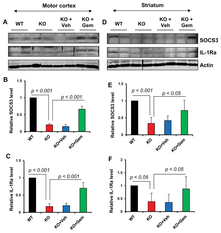 Late Infantile Neuronal Ceroid Lipofuscinosis (LINCL) is a rare neurodegenerative disease caused by mutations in the Cln2 gene that leads to deficiency or loss of function of the tripeptidyl peptidase 1 (TPP1) enzyme. TPP1 deficiency is known to cause the accumulation of autofluoroscent lipid-protein pigments in brain. Similar to other neurodegenerative disorders, LINCL is also associated with neuroinflammation and neuronal damage. Despite investigations, no effective therapy is currently available for LINCL. Therefore, we administered gemfibrozil (gem), an food and drug administration (FDA)-approved lipid-lowering drug, which has been shown to stimulate lysosomal biogenesis and induce anti-inflammation, orally, at a dose of 7.5 mg/kg body wt/day to Cln2(-/-) mice. We observed that gem-fed Cln2(-/-) mice lived longer by more than 10 weeks and had better motor activity compared to vehicle (0.1% Methyl cellulose) treatment. Gem treatment lowered the burden of storage materials, increased anti-inflammatory factors like SOCS3 and IL-1Ra, up-regulated anti-apoptotic molecule like phospho-Bad, and reduced neuronal apoptosis in the brain of Cln2(-/-) mice. Collectively, this study reinforces a neuroprotective role of gem that may be of therapeutic interest in improving the quality of life in LINCL patients.