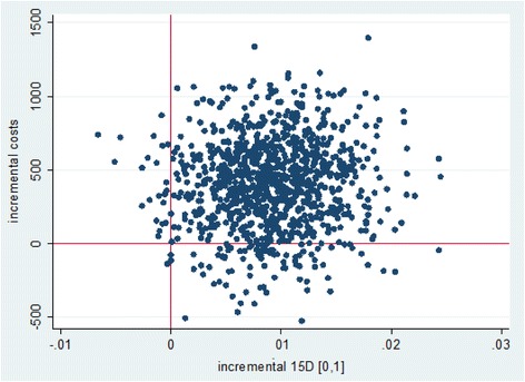 Methods: A total of 1570 patients were blindly randomized to intervention (n = 970) and control (n = 470) groups. The intervention group received monthly individual health coaching by telephone from a specially trained nurse for 12-months in addition to routine social and healthcare. Patients in the control group received routine social and health care. Quality of life was assessed at the beginning of the intervention and follow-up measurements were made after 12 months health coaching. The cost included all direct health-care costs supplemented with home care and nursing home-care costs in social care. Utility was based on a Health Related Quality of Life (HRQoL) measurement (15D instrument), and cost effectiveness was assessed using incremental cost-effectiveness ratios (ICERs).