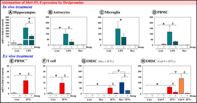 Desipramine decreases expression of human and murine indoleamine-2,3-dioxygenases