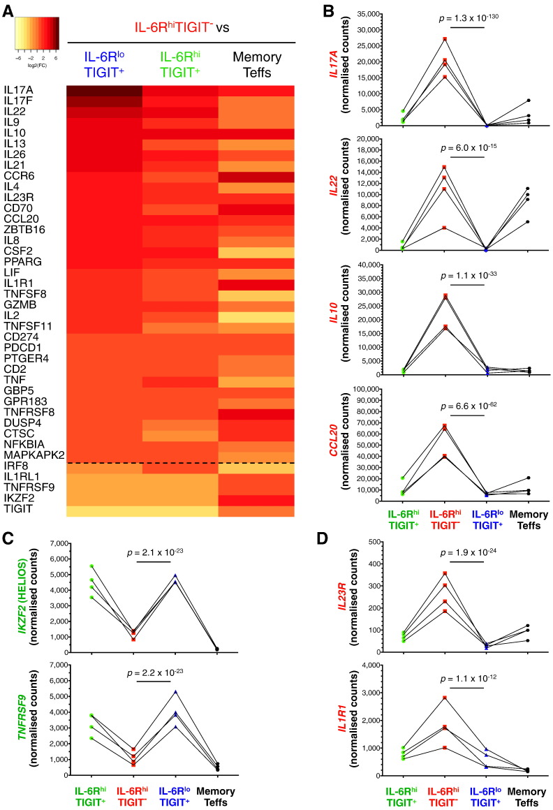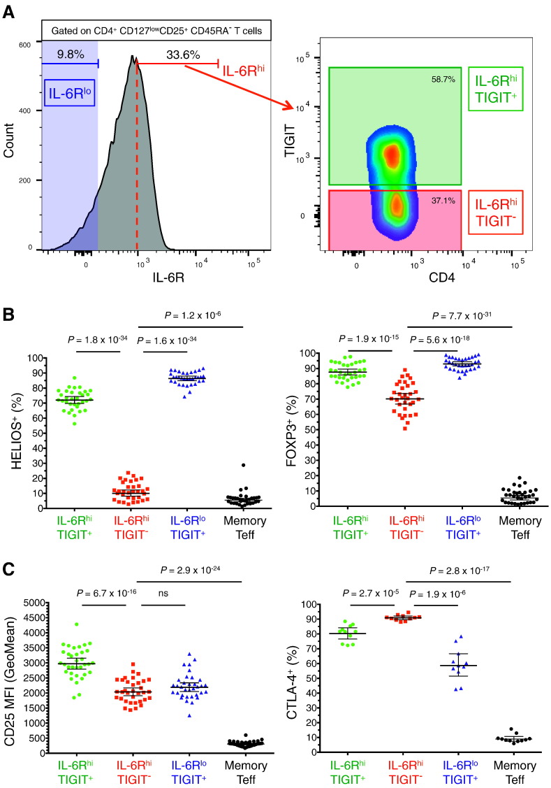 Human IL-6RhiTIGIT- CD4+CD127lowCD25+ T cells display potent in vitro suppressive capacity and a distinct Th17 profile