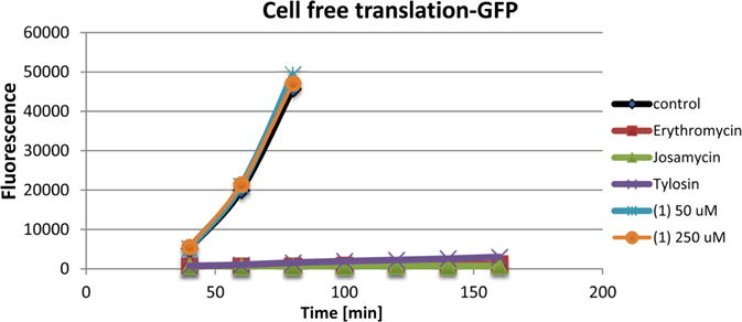 A carefully timed coculture fermentation of Penicillium fuscum and P. camembertii/clavigerum yielded eight new 16-membered-ring macrolides, berkeleylactones A-H (1, 4, 6-9, 12, 13), as well as the known antibiotic macrolide A26771B (5), patulin, and citrinin. There was no evidence of the production of the berkeleylactones or A26771B (5) by either fungus when grown as axenic cultures. The structures were deduced from analyses of spectral data, and the absolute configurations of compounds 1 and 9 were determined by single-crystal X-ray crystallography. Berkeleylactone A (1) exhibited the most potent antimicrobial activity of the macrolide series, with low micromolar activity (MIC = 1-2 μg/mL) against four MRSA strains, as well as Bacillus anthracis, Streptococcus pyogenes, Candida albicans, and Candida glabrata. Mode of action studies have shown that, unlike other macrolide antibiotics, berkeleylactone A (1) does not inhibit protein synthesis nor target the ribosome, which suggests a novel mode of action for its antibiotic activity.