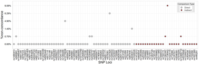 The potential of Massively Parallel Sequencing (MPS) technology to vastly expand the capabilities of human identification led to the emergence of different MPS platforms that use forensically relevant genetic markers. Two of the MPS platforms that are currently available are the MiSeq® FGx™ Forensic Genomics System (Illumina) and the HID-Ion Personal Genome Machine (PGM)™ (Thermo Fisher Scientific). These are coupled with the ForenSeq™ DNA Signature Prep kit (Illumina) and the HID-Ion AmpliSeq™ Identity Panel (Thermo Fisher Scientific), respectively. In this study, we compared the genotyping performance of the two MPS systems based on 83 SNP markers that are present in both MPS marker panels. Results show that MiSeq® FGx™ has greater sample-to-sample variation than the HID-Ion PGM™ in terms of read counts for all the 83 SNP markers. Allele coverage ratio (ACR) values show generally balanced heterozygous reads for both platforms. Two and four SNP markers from the MiSeq® FGx™ and HID-Ion PGM™, respectively, have average ACR values lower than the recommended value of 0.67. Comparison of genotype calls showed 99.7% concordance between the two platforms.