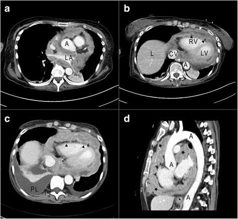 - Kaul TK, Fields BL, Kahn DR. Primary malignant pericardial mesothelioma: a case report and review. J Cardiovasc Surg (Torino) 1994;35(Suppl 3):261–7. - PubMed