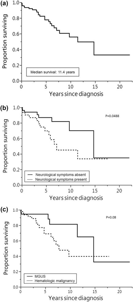 - Neel A, Perrin F, Decaux O, et al. Long-term outcome of monoclonal (type 1) cryoglobulinemia. Am J Hematol. 2014;89(2):156–161. - PubMed