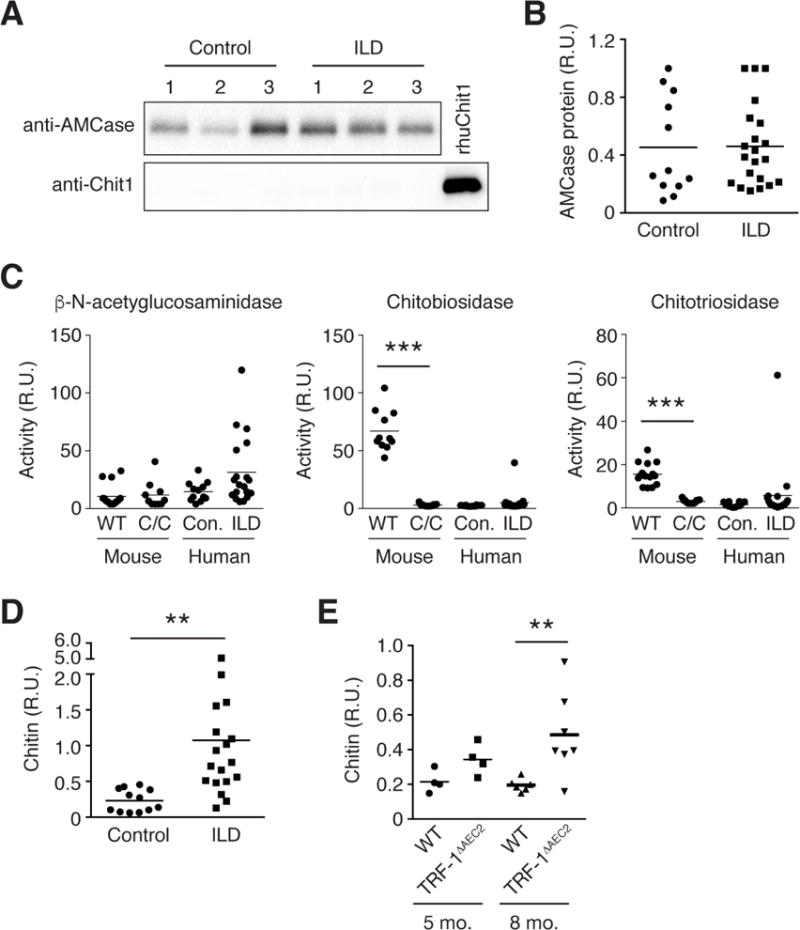 Keywords: AMCase; age-related disease; chitin; chitinase; epithelium; interleukins; interstitial lung disease; polysaccharide; pulmonary fibrosis.