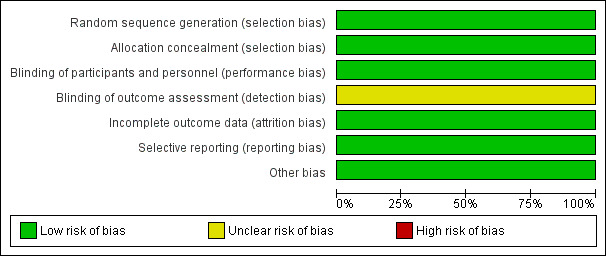 Main results: One randomised controlled trial with a total of 100 male participants was included in the review. The trial compared hand-assisted laparoscopic repair with EVAR and provided results for in-hospital mortality, operative time, length of hospital stay and lower limb ischaemia. The included study did not report on the other pre-planned outcomes of this review. No in-hospital deaths occurred in the study. Hand-associated laparoscopic repair was associated with a longer operative time (MD 53.00 minutes, 95% CI 36.49 to 69.51) than EVAR. The incidence of lower limb ischaemia was similar between the two treatment groups (risk ratio (RR) 0.50, 95% confidence interval (CI) 0.05 to 5.34). The mean length of hospital stay was 4.2 days and 3.4 days in the hand-assisted laparoscopic repair and EVAR groups respectively but standard deviations were not reported and therefore it was not possible to independently test the statistical significance of this result. The quality of evidence was downgraded for imprecision due to the inclusion of one small study; and wide confidence intervals and indirectness due to the study including male participants only. No study compared laparoscopic repair (total or hand-assisted) with open surgical repair or total laparoscopic surgical repair with EVAR.