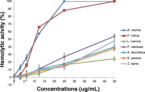 Results: Out of the seven tested plants, L. inermis and P. oleracea showed significant anti-Candida activity with MIC ~10 μg/mL. Furthermore, both plant extracts were able to inhibit C. albicans growth at its dynamic growth phases including biofilm formation and age resistance. Accompanied secondary bacterial infections can complicate Candida pathogenesis. L. inermis and P. oleracea extracts showed effective antibacterial activities against S. aureus, P. aeruginosa, E. coli, and the multidrug resistant (MDR) A. baumannii and Klebsiella pneumoniae. Both extracts showed no toxicity when measured at their MIC on human erythrocytes.