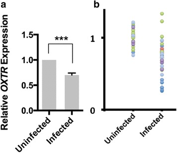 Results: Results shown in this work establish that lentiviral control vectors significantly downregulate OXTR expression at mRNA and protein levels and diminish key downstream effectors of OXTR, ERK signaling, reducing the myogenic proliferation of infected cells. This effect is evolutionarily conserved between mouse and human myogenic cells, and it manifests in satellite cells after control lentiviral transduction of mice in vivo. Furthermore, an examination of published datasets uncovered similar OXTR downregulation in humans that are afflicted with different viral infections. Additionally, cells transduced with Smad3-targeting shRNA downregulate OXTR even more than cells transduced with control viruses.