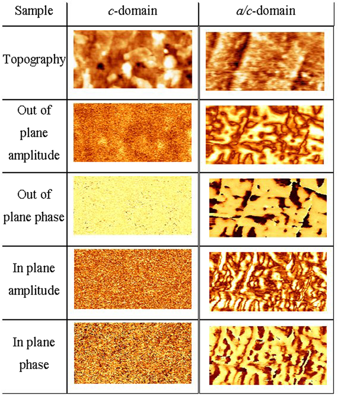 Two Pb(Zr0.20Ti0.80)O3 samples of different thickness and domain configuration have been studied. The c-domain sample was found to have a higher coercive field E c and higher dielectric losses than the other which presents approximately 60% of c-domains and 40% of a-domains as observed by piezo force microscopy (PFM) characterization. Hyperbolic law measurements reveal that the higher coercive field is due to domain wall pinning in deeper defects and hence a higher field E th is required for unpinning. The dissipation factors due to domain wall motion, however, are similar in both samples since the domain wall density is low and there is almost no interaction between domain walls. The higher dielectric losses in the c-domain oriented sample are a result of a greater contribution from the lattice and seem to be due to strain from the substrate, which is not relieved in a thin sample. PFM and dielectric characterization are complementary methods which provide a better understanding of the domain wall motion.