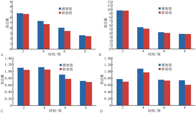 目的 分析不同咀嚼负荷作用下,幼兔髁突软骨内印度豪猪蛋白(Ihh)-人甲状旁腺激素相关蛋白(PThrP)通路表达的差异性,探讨咀嚼应力负荷对髁突软骨Ihh-PThrP信号通路的影响。方法 选取10 d龄幼兔48只,随机分为硬食组和软食组,分别喂以同种颗粒状(硬食)和粉状(软食),于饲养的第2、4、6、8周处死。采用苏木精-伊红(HE)染色、免疫组织化学、免疫印迹、实时定量荧光聚合酶链反应检测Ihh和PThrP mRNA和蛋白的动态变化。结果 HE染色显示硬食组髁突软骨厚度高于软食组的厚度;第2、4、6、8周,Ihh蛋白、PThrP蛋白和mRNA表达量在两组中呈递减趋势;软食组中Ihh和PThrP蛋白以及mRNA表达量显著低于硬食组。结论 较低的咀嚼负荷会造成髁突软骨生长因子Ihh和PThrP分泌减少,Ihh-PThrP通路表达迟缓,软骨发育受阻碍;适当的咀嚼负荷对髁突的正常发育有至关重要的作用。.