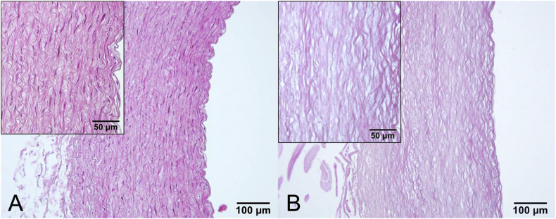 Methods: Six pigs underwent a xenotransplantation procedure where the infrarenal porcine aorta was replaced by a decellularized sheep aorta. In the following 47 days, the AP-diameter of the xenografts was measured using ultrasound once a week. All xenografts were harvested for histological analyses.