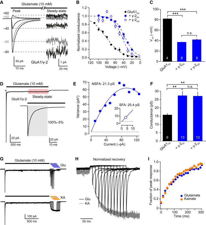Fast excitatory transmission in the CNS is mediated mainly by AMPA-type glutamate receptors (AMPARs) associated with transmembrane AMPAR regulatory proteins (TARPs). At the high glutamate concentrations typically seen during synaptic transmission, TARPs slow receptor desensitization and enhance mean channel conductance. However, their influence on channels gated by low glutamate concentrations, as encountered during delayed transmitter clearance or synaptic spillover, is poorly understood. We report here that TARP γ-2 reduces the ability of low glutamate concentrations to cause AMPAR desensitization and enhances channel gating at low glutamate occupancy. Simulations show that, by shifting the balance between AMPAR activation and desensitization, TARPs can markedly facilitate the transduction of spillover-mediated synaptic signaling. Furthermore, the dual effects of TARPs can account for biphasic steady-state glutamate concentration-response curves-a phenomenon termed "autoinactivation," previously thought to reflect desensitization-mediated AMPAR/TARP dissociation.