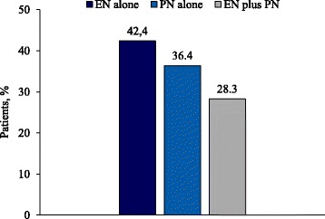 Conclusions: In the ICU setting in Latin America, malnutrition was highly prevalent and caloric intake failed to meet targeted energy delivery in 40% of critically ill adults receiving nutrition therapy. Supplemental administration of PN was associated with improved energy and protein delivery; however, PN use was low. Collectively, these findings suggest an opportunity for more effective utilisation of supplemental PN in critically ill adults who fail to receive adequate nutrition from EN alone.