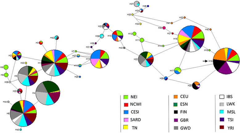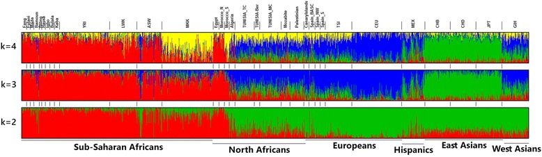 Methods: Forty SNPs covering the LCT/MCM6 genes and including the two functional variants - 13,910 C > T and - 22,018 G > A were genotyped in 117 Tunisian individuals using the Sequenom Mass Array technology. The observed nucleotide and haplotype patterns of variation were then compared with those of several African, European, and Mediterranean human groups for which comparable data were publicly available. Admixture analysis on a 5 Mb genomic region surrounding the LCT/MCM6 loci was also performed by extracting genotypes from a previously generated genome-wide dataset in order to deepen the reconstruction of the evolutionary history of these loci.