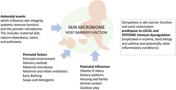 Keywords: Allergy; Antibiotics; Biodiversity; Caesarean section; Colonisation; Cytokines; DOHaD; Ecosystems; Inflammation; Microbiome; Microbiota; NCDs; Pregnancy; Prevention; Skin.