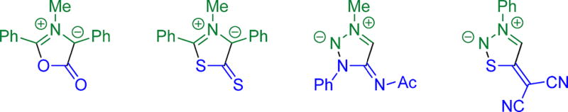 - Potts KT. Mesoionic Ring Systems. In: Padwa A, editor. 1,3-Dipolar Cycloaddition Chemistry. Vol. 2. Wiley; New York: 1984. pp. 1–82.