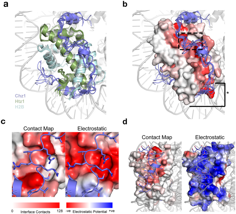 H2A.Z is a histone H2A variant that contributes to transcriptional regulation, DNA damage response and limits heterochromatin spreading. In Saccharomyces cerevisiae, H2A.Z is deposited by the SWR-C complex, which relies on several histone chaperones including Nap1 and Chz1 to deliver H2A.Z-H2B dimers to SWR-C. However, the mechanisms by which Nap1 and Chz1 cooperate to bind H2A.Z and their contribution to H2A.Z deposition in chromatin is not well understood. Using structural modeling and molecular dynamics simulations, we identify a series of H2A.Z residues that form a chaperone-specific binding surface. Mutation of these residues revealed different surface requirements for Nap1 and Chz1 interaction with H2A.Z. Consistent with this result, we found that loss of Nap1 or Chz1 individually resulted in mild defects in H2A.Z deposition, but that deletion of both Nap1 and Chz1 resulted in a significant reduction of H2A.Z deposition at promoters and led to heterochromatin spreading. Together, our findings reveal unique H2A.Z surface dependences for Nap1 and Chz1 and a redundant role for these chaperones in H2A.Z deposition.