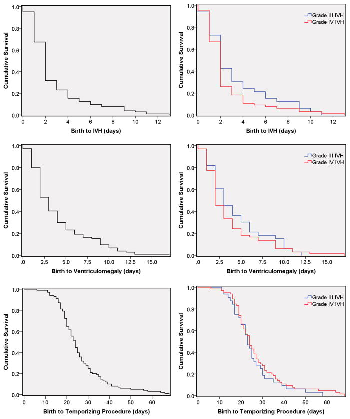 Methods: Data were collected retrospectively on 104 preterm infants with intraventricular hemorrhage (IVH) who received neurosurgical intervention for PHH at St. Louis Children's Hospital from 1994 to 2016. Kaplan-Meier curves were constructed for various endpoints.
