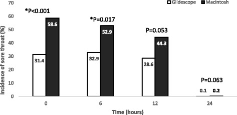 Incidence and severity of postoperative sore throat: a randomized comparison of Glidescope with Macintosh laryngoscope