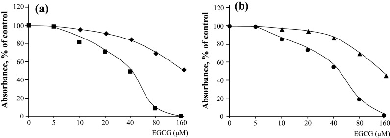 Purpose: Our previous experiments show that the main constituent of green-tea catechins, (-)-epigallocatechin gallate (EGCG), completely prevents tumor promotion on mouse skin initiated with 7,12-dimethylbenz(a)anthracene followed by okadaic acid and that EGCG and green tea extract prevent cancer development in a wide range of target organs in rodents. Therefore, we focused our attention on human cancer stem cells (CSCs) as targets of cancer prevention and treatment with EGCG.