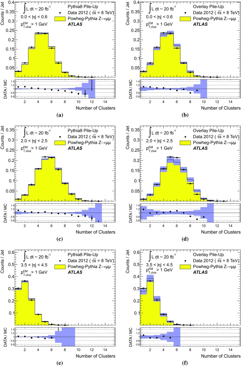 The dependence of the average number of positive-energy topo-clusters on the pile-up activity…