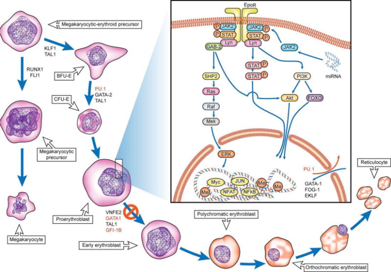 Keywords: Acute erythroleukemia – M6a subtype; Acute erythroleukemia – M6b subtype; Bromodomain protein; Erythroblasts; GATA1 protein; MicroRNA; PU.1 protein; Pure erythroid leukemia; TP53.