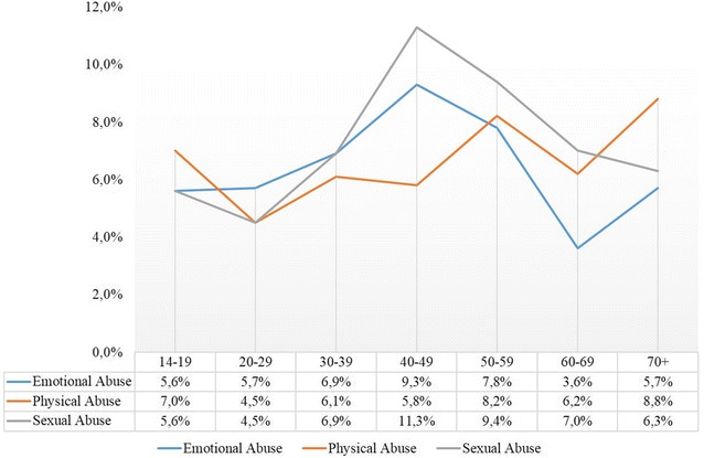 Results: Overall, 2.6% (f: 3.9%, m: 1.2%) of all participants reported severe emotional abuse, 3.3% (f: 3.4%, m: 3.3%) severe physical abuse, 2.3% (f: 3.7%, m: 0.7%) severe sexual abuse, 7.1% (f: 8.1%, m: 5.9%) severe emotional neglect and 9% (f: 9.2%, m: 8.9%) severe physical neglect. Women were more likely to report at least moderate sexual and emotional abuse than men. The largest difference between age groups was reported for physical neglect, with participants aged over 70 years reporting the highest rates. Participants who reported childhood maltreatment were more likely to be unemployed or have lower educational outcomes. The most common combination of maltreatment types were physical and emotional neglect, all five types of maltreatment combined and physical and emotional neglect and physical abuse combined.
