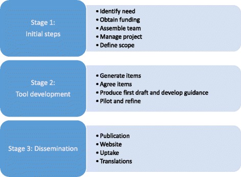 Conclusions: We recommend that anyone who would like to develop a new quality assessment tool follow the stages outlined in this paper. We hope that our proposed framework will increase the number of tools developed using robust methods.