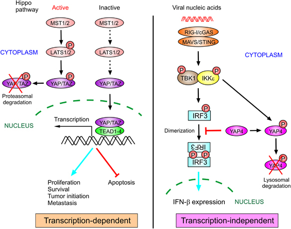 YAP antagonizes innate antiviral immunity and is targeted for lysosomal degradation through IKKɛ-mediated phosphorylation.Nat Immunol. 2017 Jul;18(7):733-743. doi: 10.1038/ni.3744. Epub 2017 May 8. Nat Immunol. 2017. PMID: 28481329