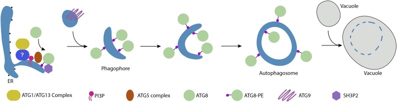 Environmental stress activates autophagy and leads to autophagosome formation at the endoplasmic reticulum.