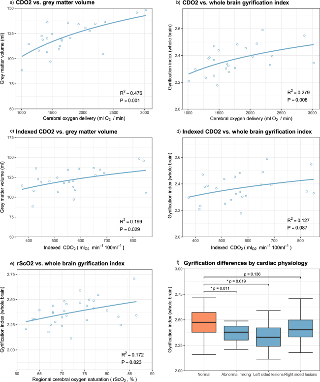 Neurodevelopmental impairment is the most common comorbidity associated with complex congenital heart disease (CHD), while the underlying biological mechanism remains unclear. We hypothesised that impaired cerebral oxygen delivery in infants with CHD is a cause of impaired cortical development, and predicted that cardiac lesions most associated with reduced cerebral oxygen delivery would demonstrate the greatest impairment of cortical development. We compared 30 newborns with complex CHD prior to surgery and 30 age-matched healthy controls using brain MRI. The cortex was assessed using high resolution, motion-corrected T2-weighted images in natural sleep, analysed using an automated pipeline. Cerebral oxygen delivery was calculated using phase contrast angiography and pre-ductal pulse oximetry, while regional cerebral oxygen saturation was estimated using near-infrared spectroscopy. We found that impaired cortical grey matter volume and gyrification index in newborns with complex CHD was linearly related to reduced cerebral oxygen delivery, and that cardiac lesions associated with the lowest cerebral oxygen delivery were associated with the greatest impairment of cortical development. These findings suggest that strategies to improve cerebral oxygen delivery may help reduce brain dysmaturation in newborns with CHD, and may be most relevant for children with CHD whose cardiac defects remain unrepaired for prolonged periods after birth.