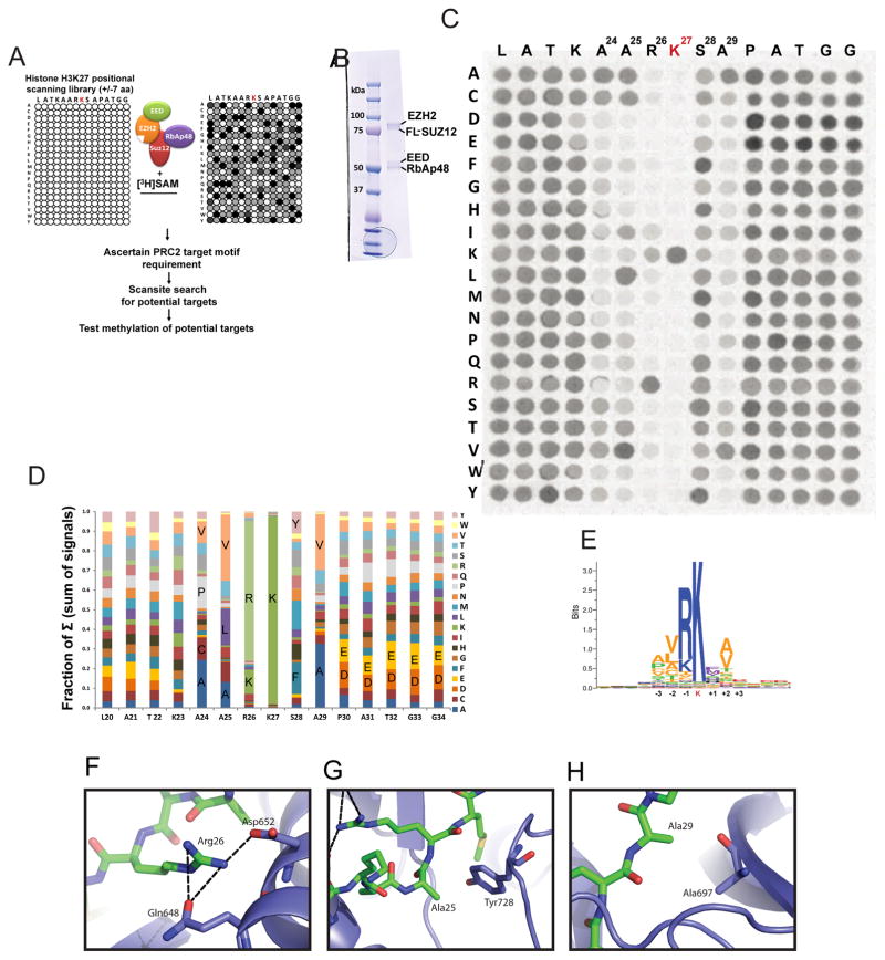 Polycomb repressive complex 2 (PRC2-EZH2) methylates histone H3 at lysine 27 (H3K27) and is required to maintain gene repression during development. Misregulation of PRC2 is linked to a range of neoplastic malignancies, which is believed to involve methylation of H3K27. However, the full spectrum of non-histone substrates of PRC2 that might also contribute to PRC2 function is not known. We characterized the target recognition specificity of the PRC2 active site and used the resultant data to screen for uncharacterized potential targets. The RNA polymerase II (Pol II) transcription elongation factor, Elongin A (EloA), is methylated by PRC2 in vivo. Mutation of the methylated EloA residue decreased repression of a subset of PRC2 target genes as measured by both steady-state and nascent RNA levels and perturbed embryonic stem cell differentiation. We propose that PRC2 modulates transcription of a subset of low expression target genes in part via methylation of EloA.