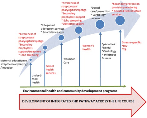 Methods and results: In this narrative review, we describe how RHD care can be informed by and integrated with models of care developed for priority non-communicable diseases (coronary heart disease), and high-burden communicable diseases (tuberculosis). Examining the four-level prevention model (primordial through tertiary prevention) suggests primordial and primary prevention of RHD can leverage off existing tuberculosis control efforts, given shared risk factors. Successes in coronary heart disease control provide inspiration for similarly bold initiatives for RHD. Further, we illustrate how the Chronic Care Model (CCM), developed for use in non-communicable diseases, offers a relevant framework to approach RHD care. Systems strengthening through greater integration of services can improve RHD programs.