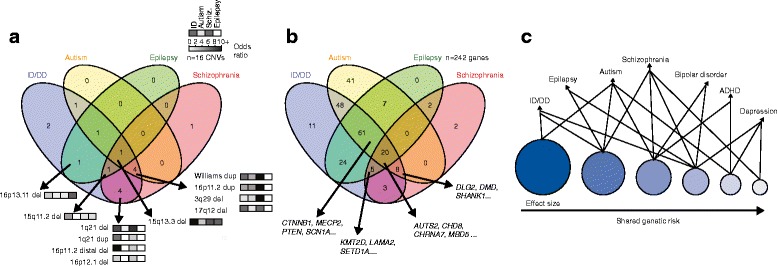 Distinct neurodevelopmental disorders have a common genetic etiology that explains the high degree of comorbidity among these disorders. A recent study sought to identify copy number variants across five neurodevelopmental disorders, and detected an enrichment for chromosome 9p24.3 duplication encompassing DOCK8 and KANK1 in affected individuals. Such large-scale studies will help uncover additional causative and modifier loci within common pathways, which will enable the development of therapeutic targets for the treatment of multiple disorders.See related research 10.1186/s13073-017-0494-1.