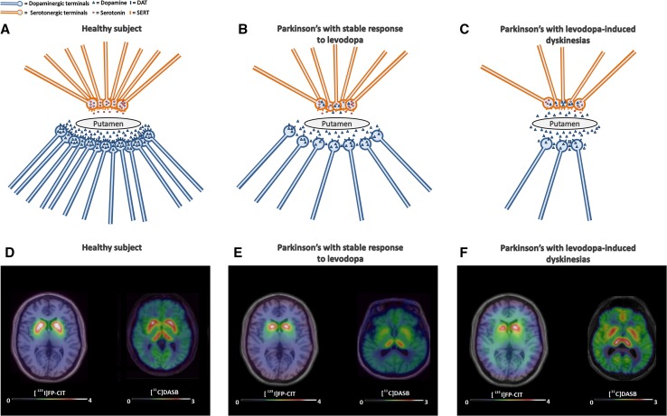 Keywords: Graft-induced dyskinesias; Levodopa-induced dyskinesias; Molecular imaging; Parkinson’s diseases; Positron emission tomography; Serotonergic system.