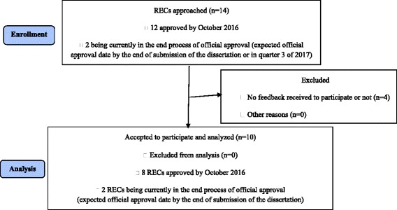 Conducted among adult members of RECs in Lebanon, this study involves human subjects. However, no benefits or hazards are discerned in this context. Thus, no approval was required from any local ethical committee in Lebanon, except from one university medical centre in Beirut, Lebanon. In parallel, the study could have had an expedited review because there were limited risks, but the present proposal was submitted to the University of Liverpool in February 2017 for ethics clearance, which was given in March 2017. The questionnaire completion was equivalent to consenting to participate in the study.