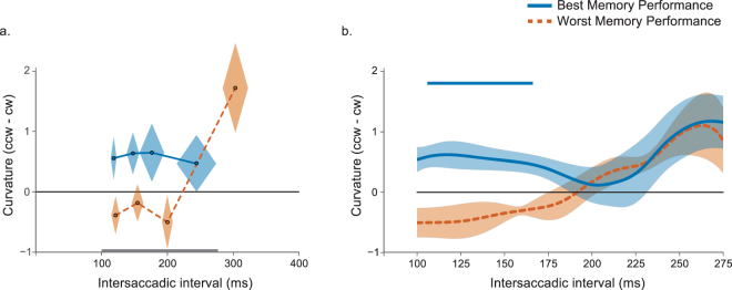 Each time we make an eye movement, positions of objects on the retina change. In order to keep track of relevant objects their positions have to be updated. The situation becomes even more complex if the object is no longer present in the world and has to be held in memory. In the present study, we used saccadic curvature to investigate the time-course of updating a memorized location across saccades. Previous studies have shown that a memorized location competes with a saccade target for selection on the oculomotor map, which leads to saccades curving away from it. In our study participants performed a sequence of two saccades while keeping a location in memory. The trajectory of the second saccade was used to measure when the memorized location was updated after the first saccade. The results showed that the memorized location was rapidly updated with the eyes curving away from its spatial coordinates within 130 ms after the first eye movement. The time-course of updating was comparable to the updating of an exogenously attended location, and depended on how well the location was memorized.