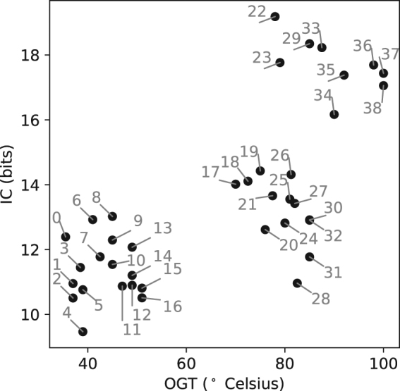 The subtle mechanisms by which protein-DNA interactions remain functional across a wide range of temperatures are largely unknown. In this work, we manually curated available information relating fully sequenced archaeal genomes with organism growth temperatures. We built a motif that represents the core promoter of each species and calculated its information content. We then studied the relation between optimal growth temperature (OGT) and information content (IC) in the promoter region.We found a positive correlation between G + C content and OGT in tRNA regions and not in overall genome. Furthermore, we found that there is a positive correlation between information content and optimal growth temperatures in Archaea. This can't be explained by an increased C+G composition nor by other obvious mechanisms. These findings suggest that increased information content could produce a positive fitness in organisms living at high temperatures. We suggest that molecular information theory may need to be adapted for hyperthermophiles.