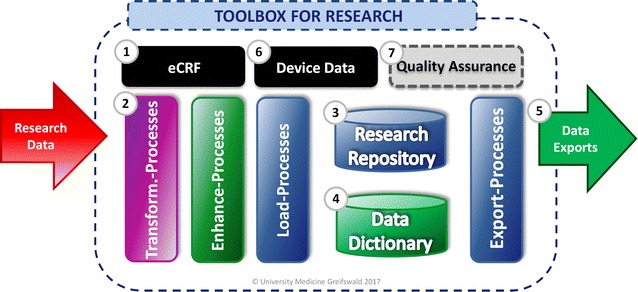 Conclusions: The Toolbox for Research was successfully piloted in the German Burn Registry in 2016 facilitating the documentation of 4350 burn cases at 54 study sites. The Toolbox for Research can be downloaded free of charge from the project website and automatically installed due to the use of Docker technology.