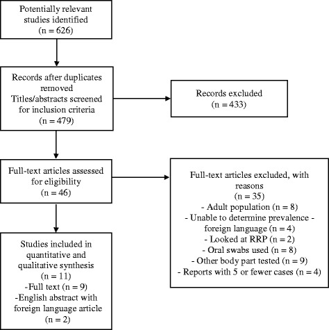 Conclusions: HPV may be present in pediatric tonsillectomy specimens; however, the largest included study demonstrated a prevalence of 0%. Future testing should be performed using methods with high sensitivities and specificities, such as reverse transcript real-time PCR or digital droplet PCR.