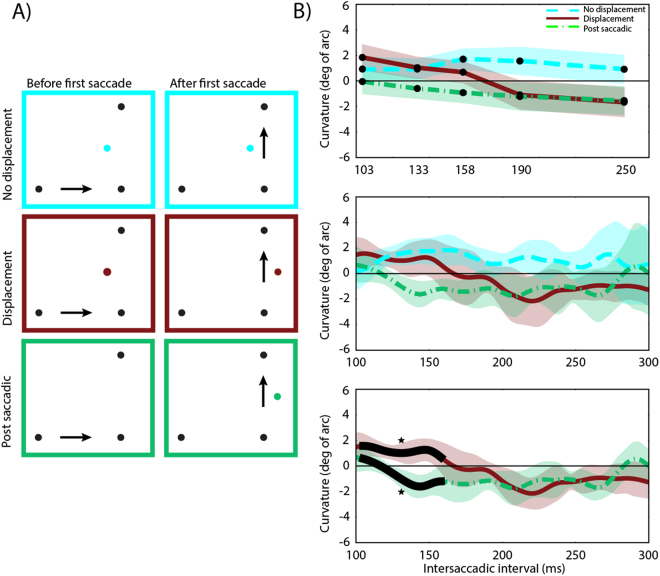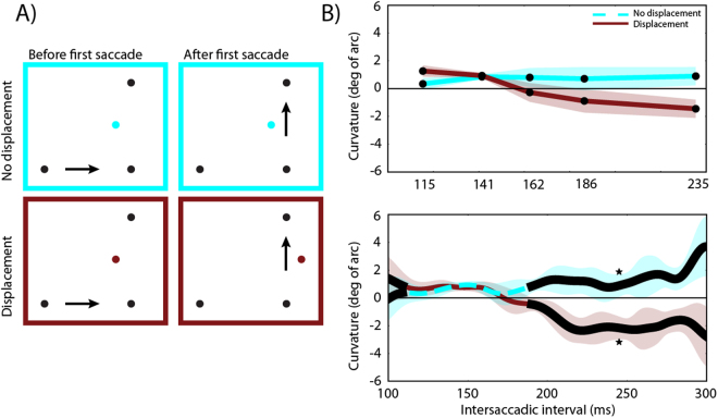 Distractor displacements during saccades are reflected in the time-course of saccade curvature