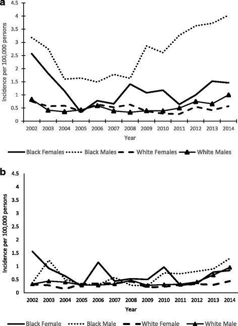 Results: Among 9968 shigellosis cases, 2764 (28%) were severe. Restricting to cases due to S. sonnei and S. flexneri, median annual incidence of severe shigellosis among adults was 0.56 and highest overall incidence was among black males 18-49 years old (1.58). Among adults with shigellosis, odds of severe disease were higher among males than females aged 18-49 years old (OR [95% CI] = 1.32 [1.15-1.52], p < 0.001) and among males than females with S. flexneri infections (OR [95% CI] =1.39 [1.10-1.75], p = 0.005). The odds of severe shigellosis were higher among blacks than whites (OR [95% CI] = 1.36 [1.22-1.52], p < 0.001).