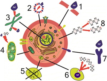 Studies on the methods of nanoparticle (NP) synthesis, analysis of their characteristics, and exploration of new fields of their applications are at the forefront of modern nanotechnology. The possibility of engineering water-soluble NPs has paved the way to their use in various basic and applied biomedical researches. At present, NPs are used in diagnosis for imaging of numerous molecular markers of genetic and autoimmune diseases, malignant tumors, and many other disorders. NPs are also used for targeted delivery of drugs to tissues and organs, with controllable parameters of drug release and accumulation. In addition, there are examples of the use of NPs as active components, e.g., photosensitizers in photodynamic therapy and in hyperthermic tumor destruction through NP incorporation and heating. However, a high toxicity of NPs for living organisms is a strong limiting factor that hinders their use in vivo. Current studies on toxic effects of NPs aimed at identifying the targets and mechanisms of their harmful effects are carried out in cell culture models; studies on the patterns of NP transport, accumulation, degradation, and elimination, in animal models. This review systematizes and summarizes available data on how the mechanisms of NP toxicity for living systems are related to their physical and chemical properties.