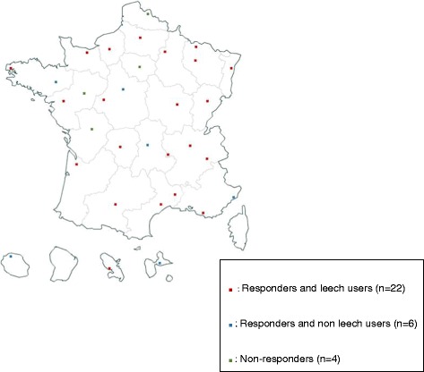 Methods: Data concerning conditions of storage, leech external decontamination, microbiological controls, mode of delivery and antibiotic prophylaxis were collected from all the French university hospitals in practicing leech therapy, on the basis of a standardized questionnaire.