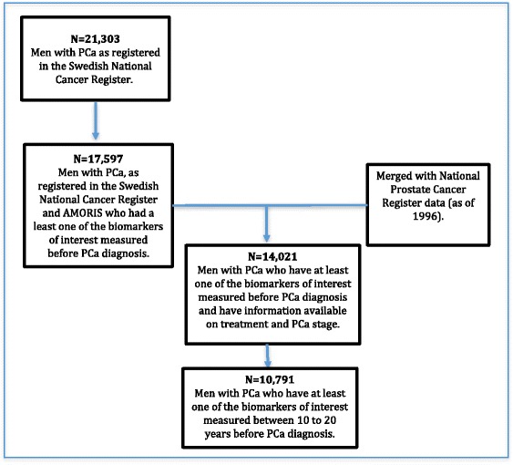 Methods: From the Swedish AMORIS cohort, we selected all men diagnosed with PCa between 1996 and 2011, with at least one of the five biomarkers of interest (glucose, fructosamine, triglycerides, total cholesterol (TC), GGT) measured on average 16 years before PCa diagnosis (n = 10,791). Multivariate Cox proportional hazards models were used to determine hazard ratios (HR) for risk of SDPTs (overall and subtypes) by levels of the five biomarkers. Effect modification of treatment was assessed.